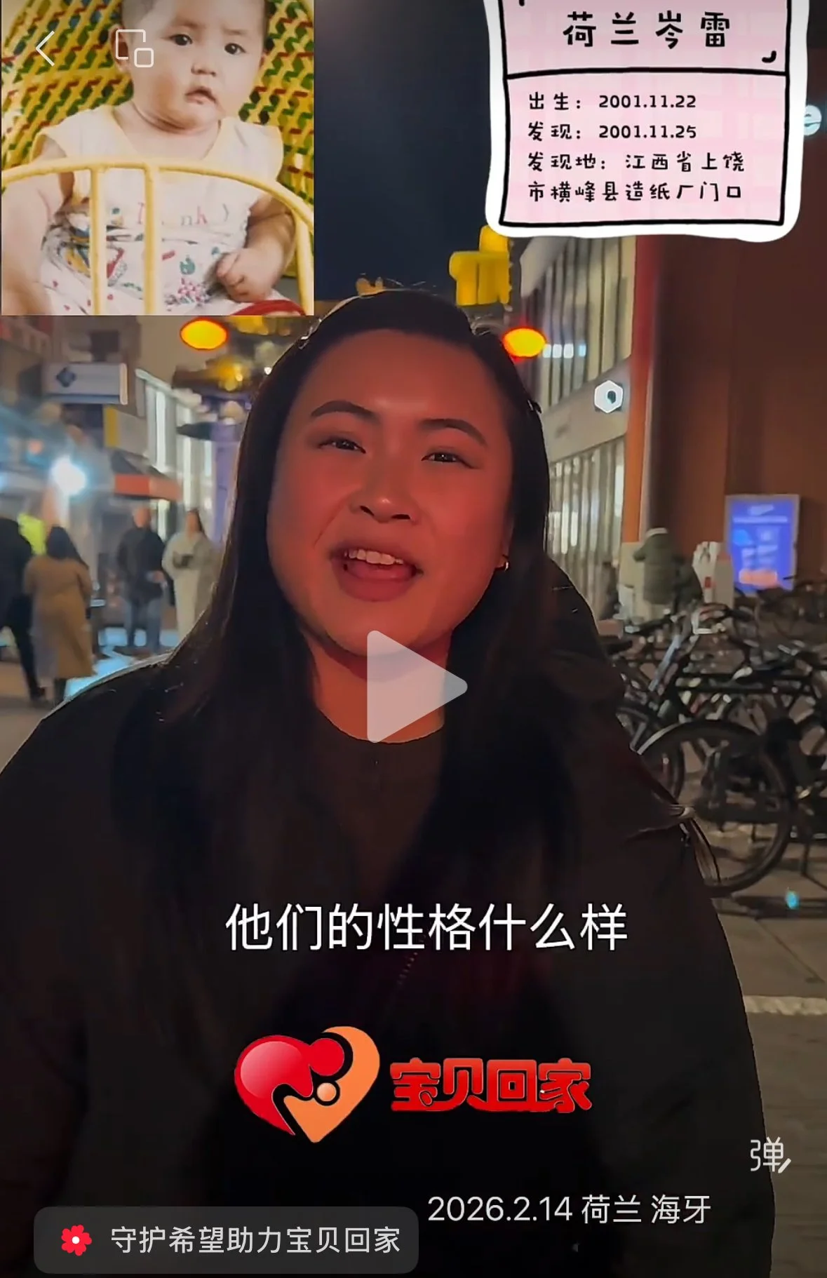 “I am a child adopted from Chongqing. Some parents in China, for various reasons, had to send their children to welfare centres. Many of those children have since been adopted by families overseas. I, along with my friends in this video, am now hoping to find our birth parents.”